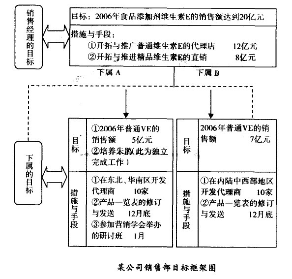 為使大家對目標之間的這種縱橫關系有一個更深入的認識,下面再以某公司銷售部為例,作一份更詳盡的目標框架圖。