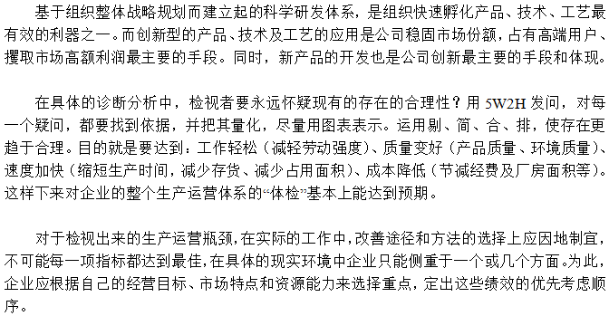 生產(chǎn)運(yùn)營系統(tǒng)的優(yōu)劣直接影響到生產(chǎn)企業(yè)的效益,因此生產(chǎn)運(yùn)營系統(tǒng)的診斷,找出系統(tǒng)的缺欠和不足并制定可行的實(shí)施方案是企業(yè)管理者或生產(chǎn)顧問專家的必修課。對(duì)于經(jīng)驗(yàn)不夠豐富的管理者應(yīng)從哪幾個(gè)方面對(duì)生產(chǎn)運(yùn)營系統(tǒng)的全面診斷呢?