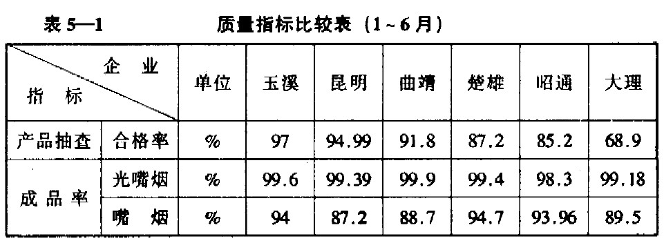 成品率,光嘴煙較好,嘴煙較低為87%一94%,且廠際波動(dòng)大。如果將檢驗(yàn)判別方面的一些因素結(jié)合起來看,實(shí)際數(shù)還會(huì)更低,這是主要的薄弱環(huán)節(jié)之一(參見表5-1)。