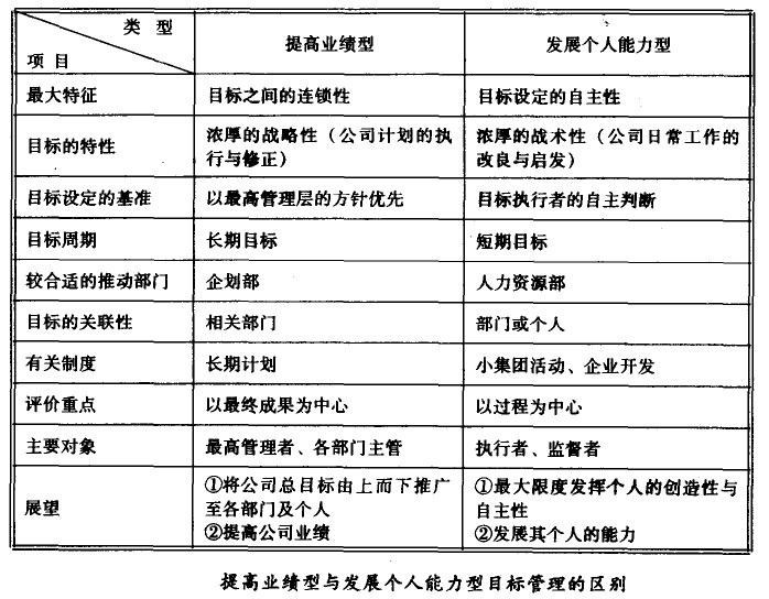 目標(biāo)管理的宗旨,是將提高業(yè)績型與發(fā)展個人能力型這兩種類型合并實(shí)施,有效整合。