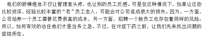 新上任管理員遇到老油條是企業中常見的事情,也是讓管理者很頭疼的問題。那些往往是一些老員工,在公司呆時間較長,有一定的“勢力”,常常在你的管理中跟你叫板,對你愛理不理,有時會嚴重影響自己的管理進展,甚至讓管理無法實施下去。